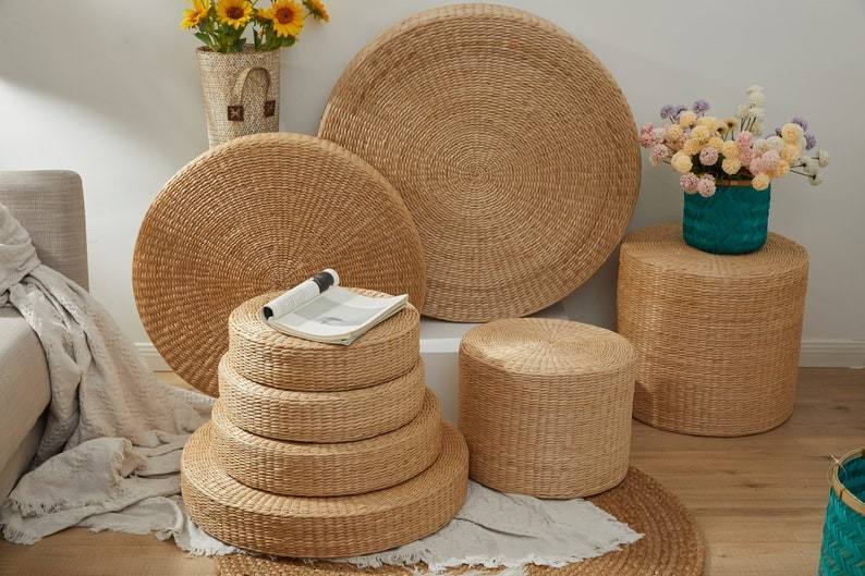 Rustic Water Hyacinth Floor Cushion- Cushion Ottoman Meditation 99GD Vietnam Crafts Village