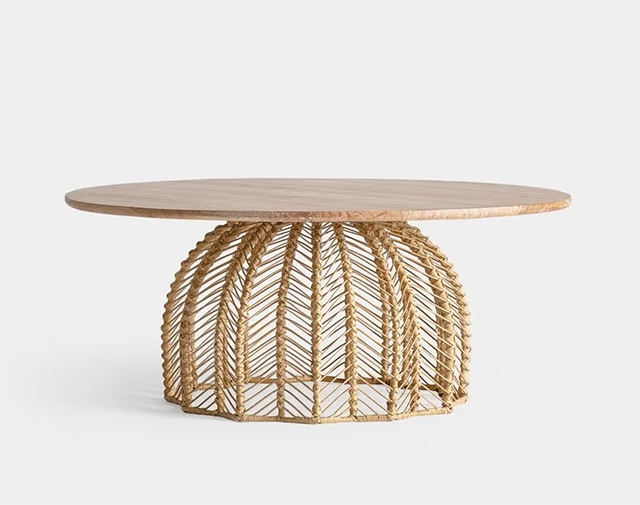 RusticVibe Natural Teak Wood Jepara Indonesia Coffee Table with Rattan Wicker for Kitchen or Dining Application