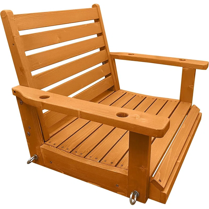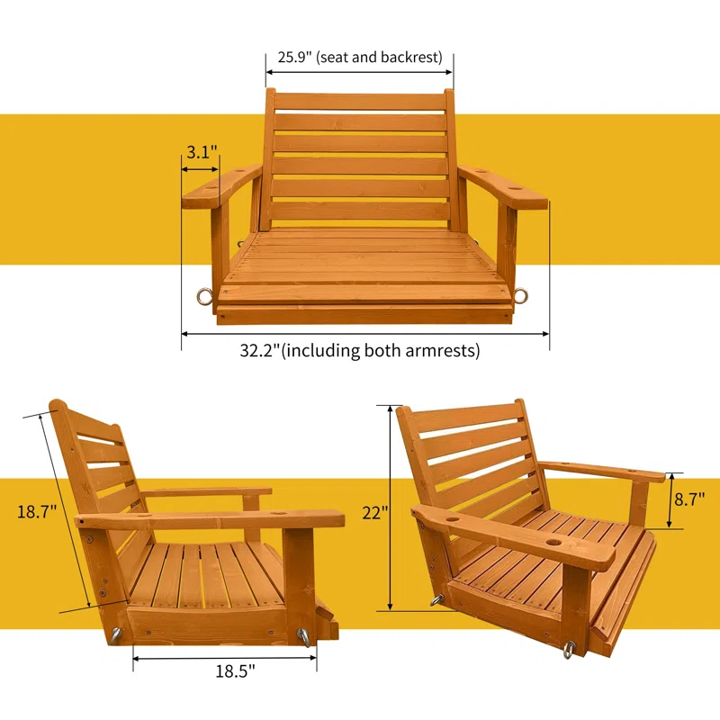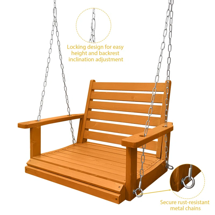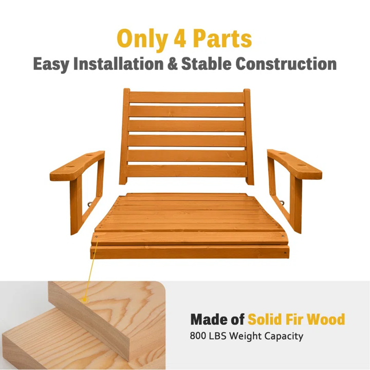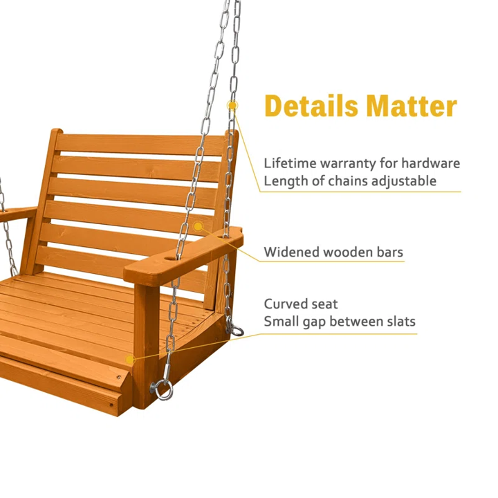 Ruvimbo Modern 2-Person Swivel Porch Swing Bench Comfortable Solid Bent Wood Durable Teak Finish Armrests Living Room Hotel