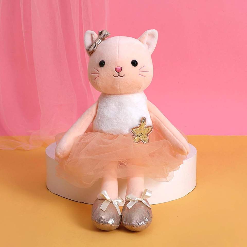 Ruzucoda 15.5 Inches Orange Kitten Cat Plush Ballerina Doll Cotton Stuffed Animals Toys for Girls Ballet Dance Recital Gifts