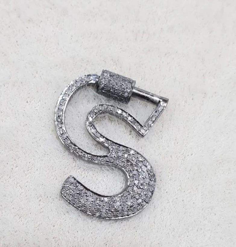 S Initial Carabiner 925 Sterling Silver Pave Diamond Handmade Designer 30MM