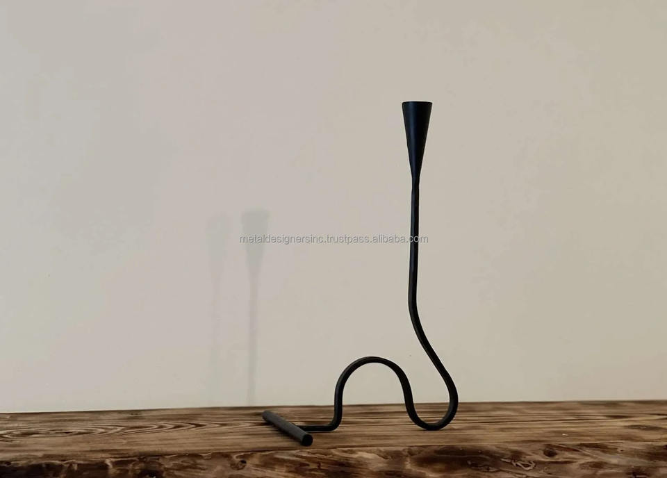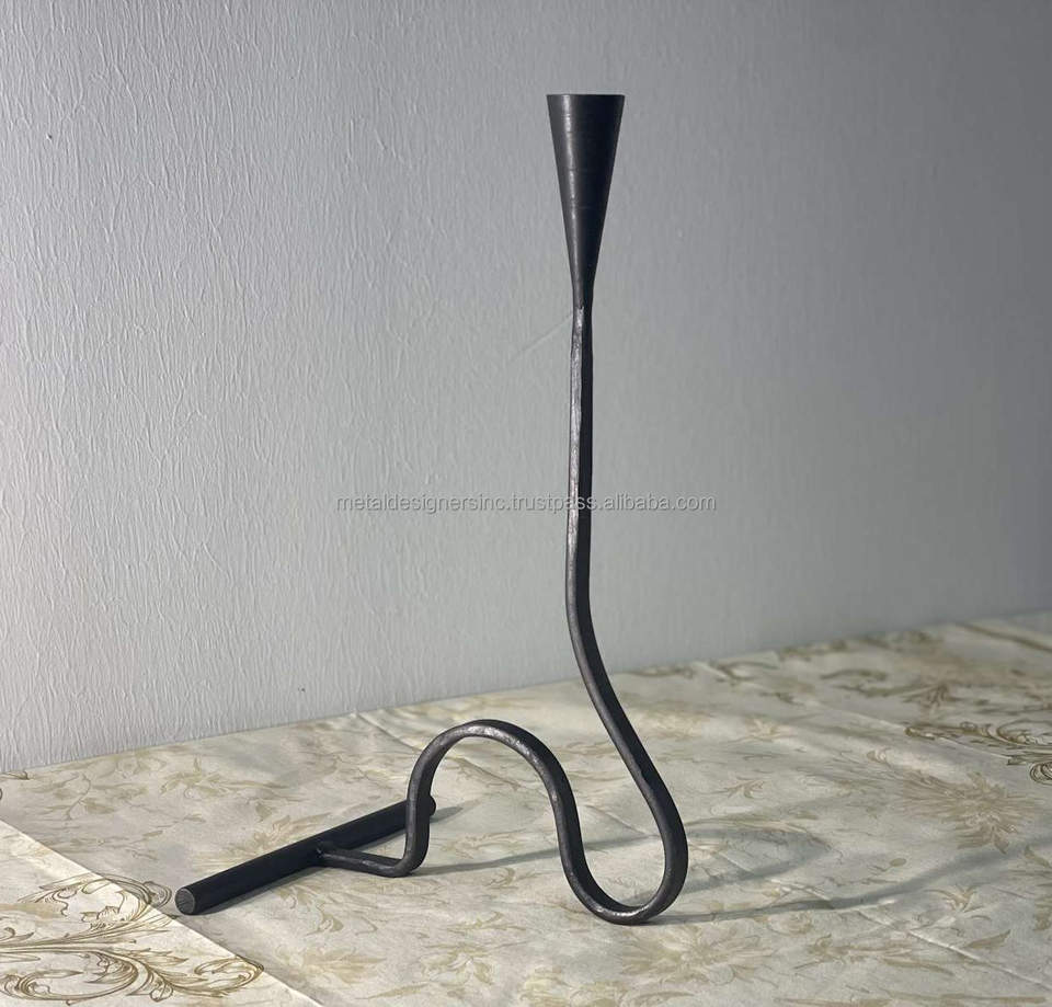 S-Type Wrought Iron Forged Candlestick Black Finish Candle Holder with Snake Style Metal Candelabro