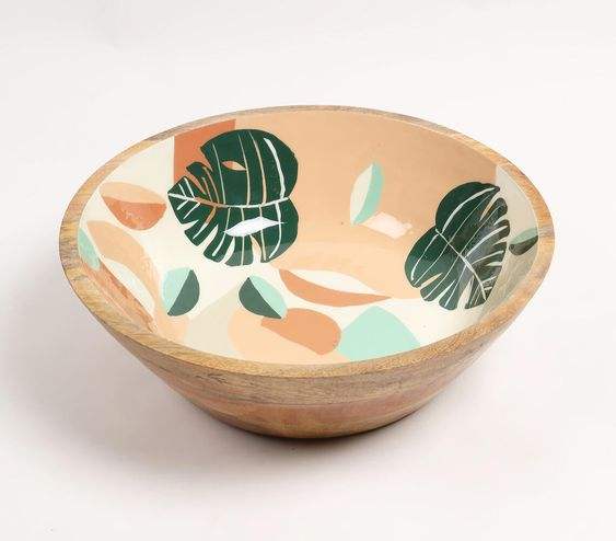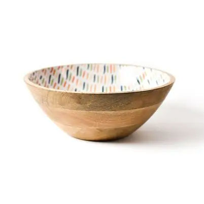 S a and Sons Commercial Kitchen Counter Serving Bowl Enamel Finished Wooden Salad & Fruit Bowl for Soup & Pasta