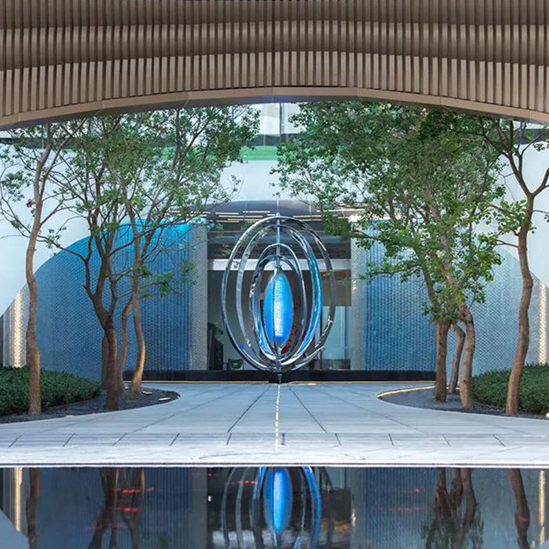 Custom Stainless Steel Ribbon Sapphire Sculpture Outdoor Metal Abstract Design for Hotel Sales Center Office Building Floor