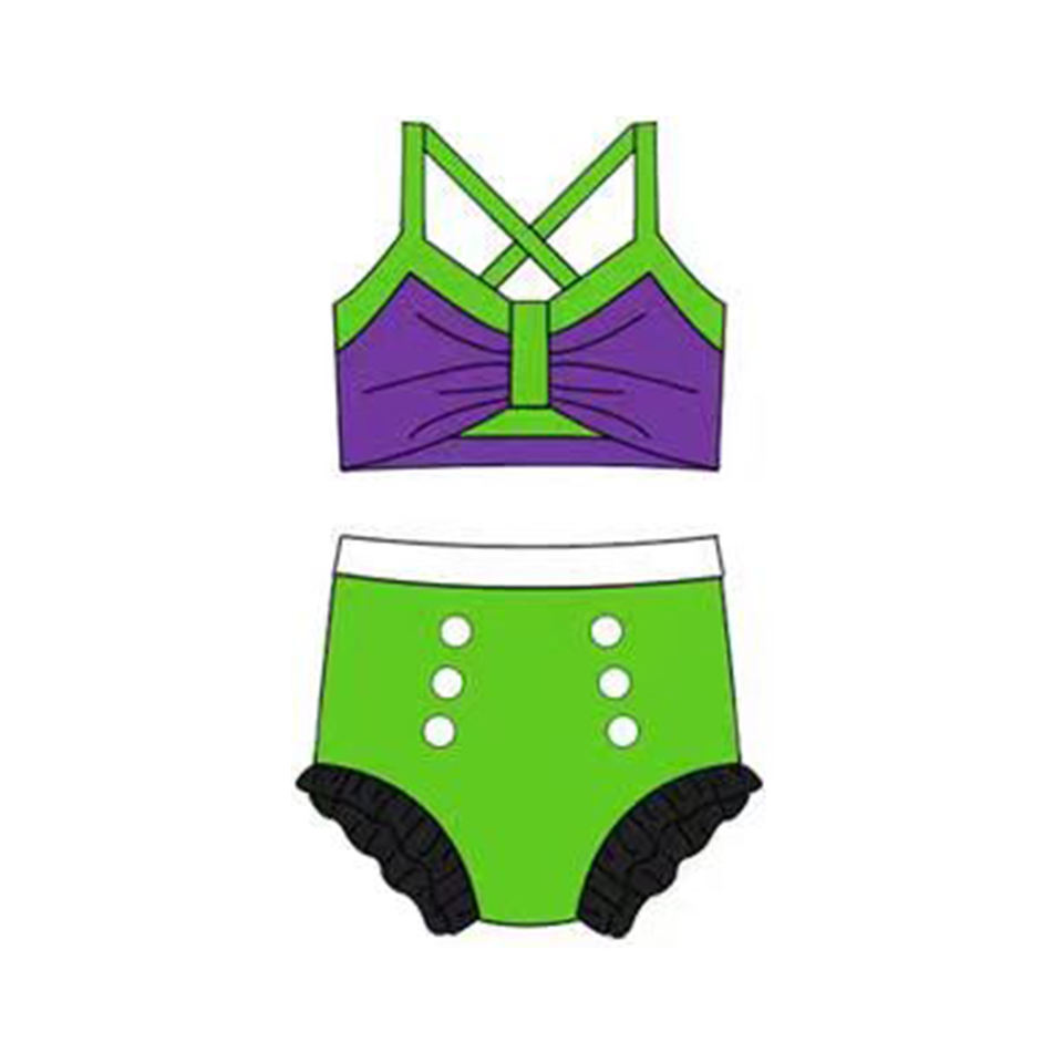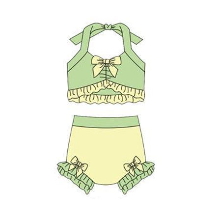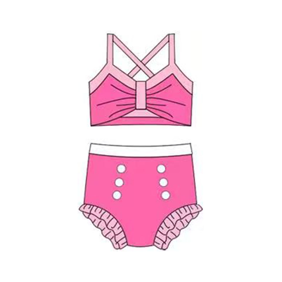 S0680 CUSTOM Baby Girls red strap black Vest Bows swimming wear 2 Pieces Swimsuits