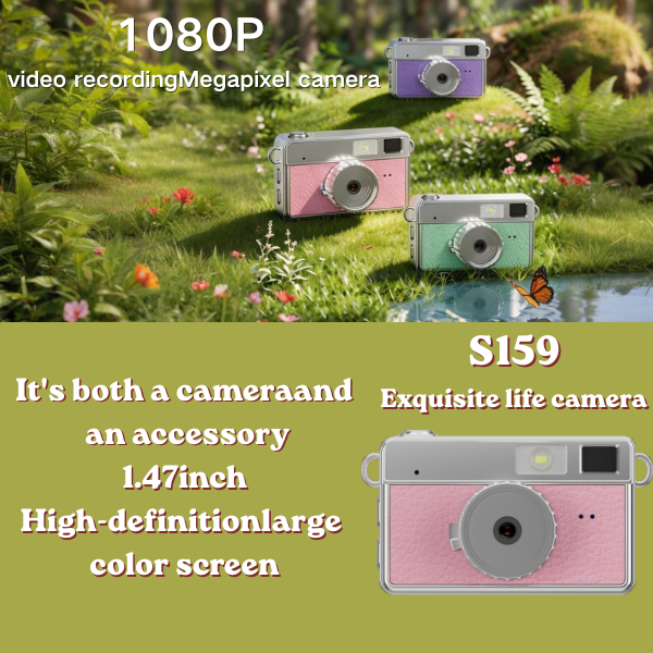S159 Mini Camera Pendant Flip Screen Stylish Multi Filters With Flash Color Options Fashion Necklace Eco Data Cable