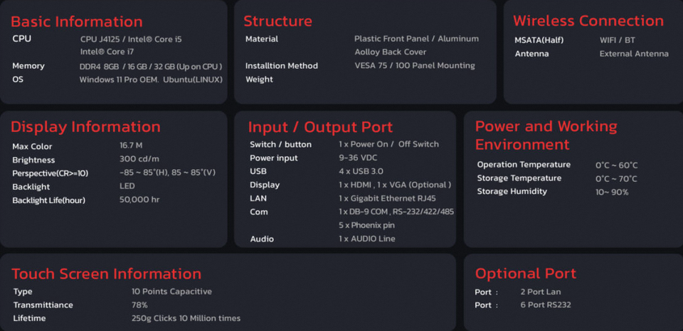Product Name:S2-Series Super Slim Industrial IOT Computer Screen Size 15.6"