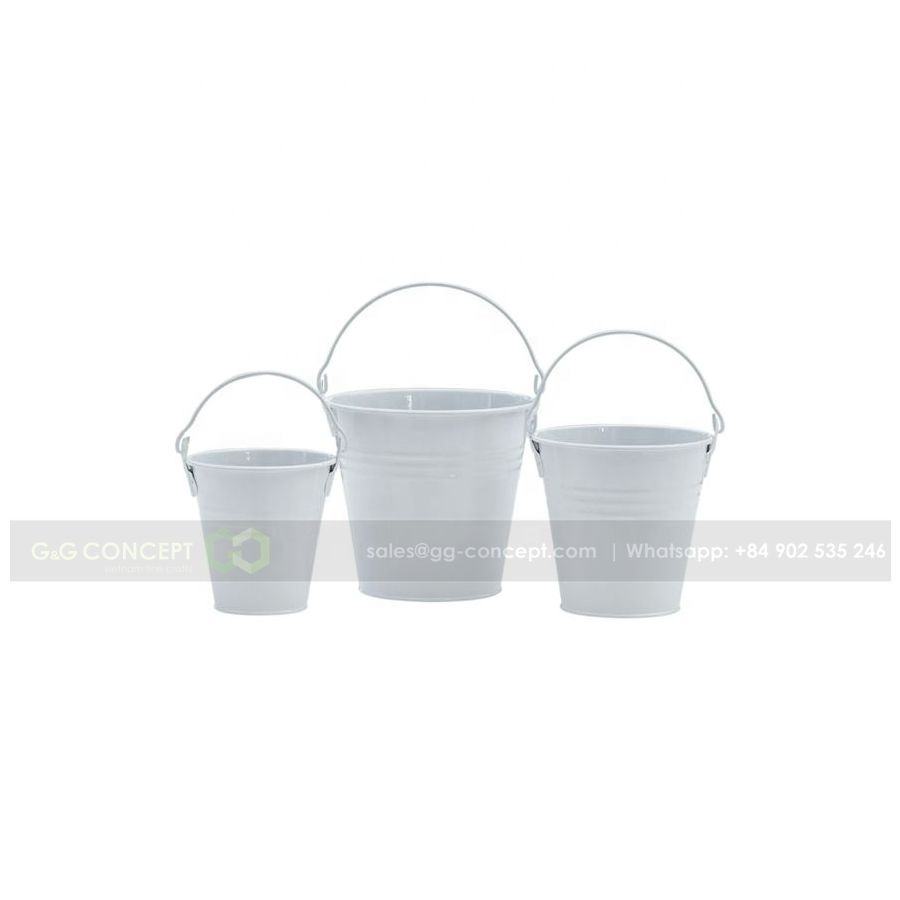 S3/ White Galvanized Bucket Planter Round Galvanized Steel Flower Pot,plant Pot Metal Used With Flower/green Plant Modern
