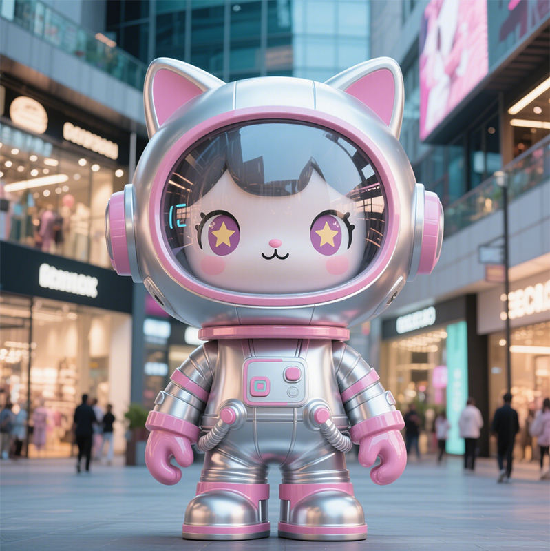 S33 Cat Astronaut Statue Fiberglass Cartoon Character Sculptures for Shopping Mall Festival Chenmei Custom Made
