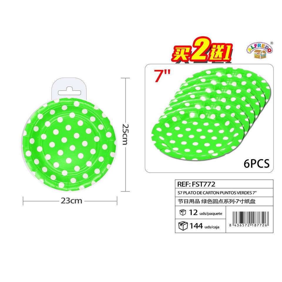 S7 Green Dots 7\" Set of 6 Paper Plates Party Supplies and Bowls