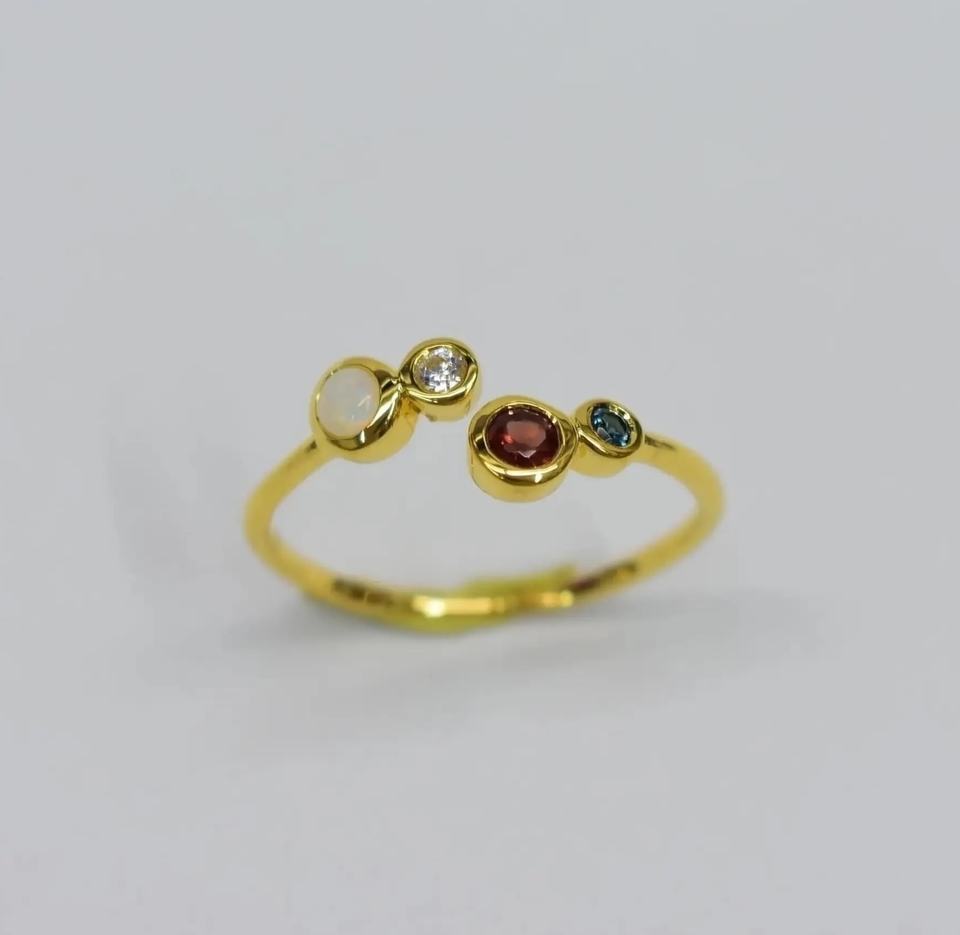 S925 14K Gold Plated Natural Australian Opal Garnet Ring Cute Minimal Customizable Wedding Engagement Gift for Parties New