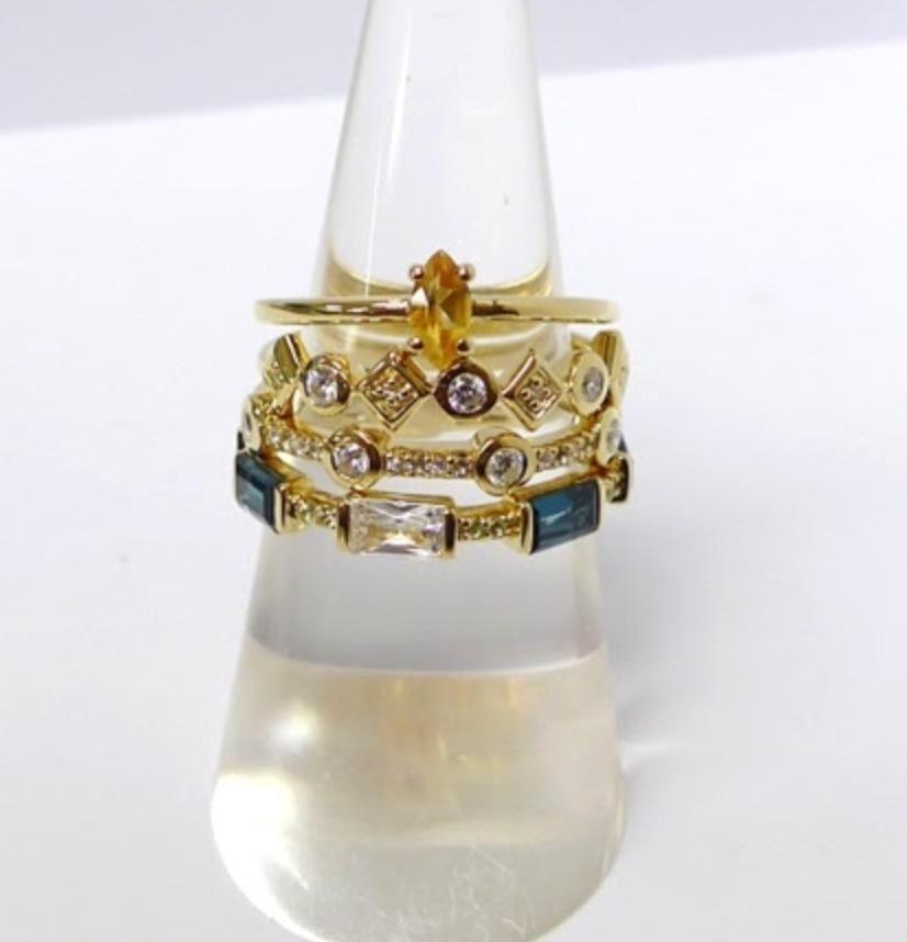 S925 14K Gold Plated Stackable Natural Blue Sapphire Sky Blue Topaz Citrine Cubic Zirconia Ring Customizable for Retails OEM