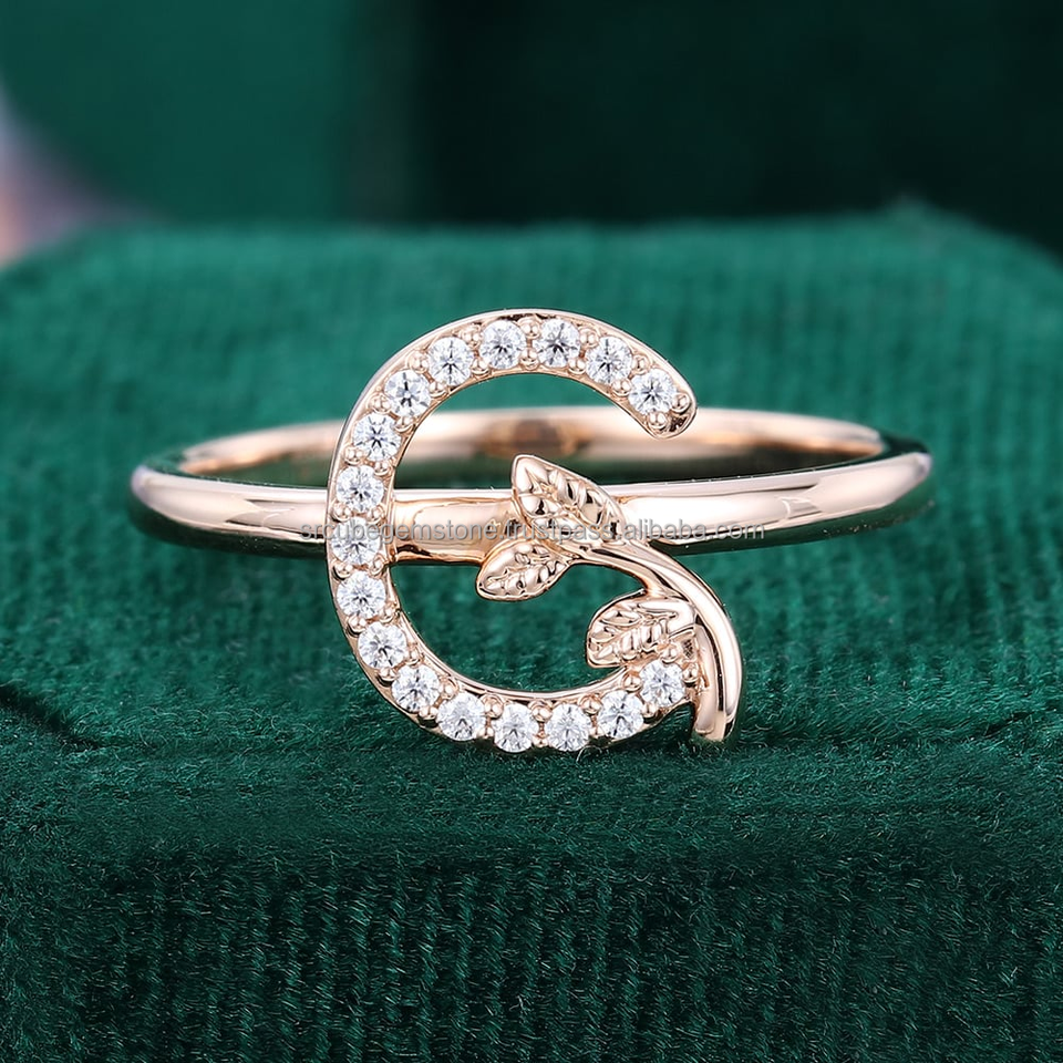 S925 Gold Plated Women's Initial 'G' Diamond Ring Fashionable Moissanite Jewellery for Wedding Engagement or Gift