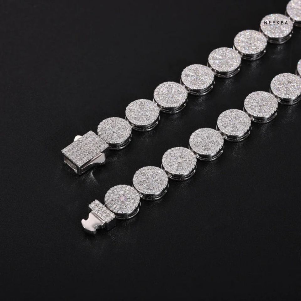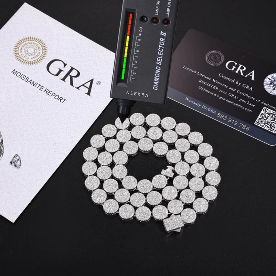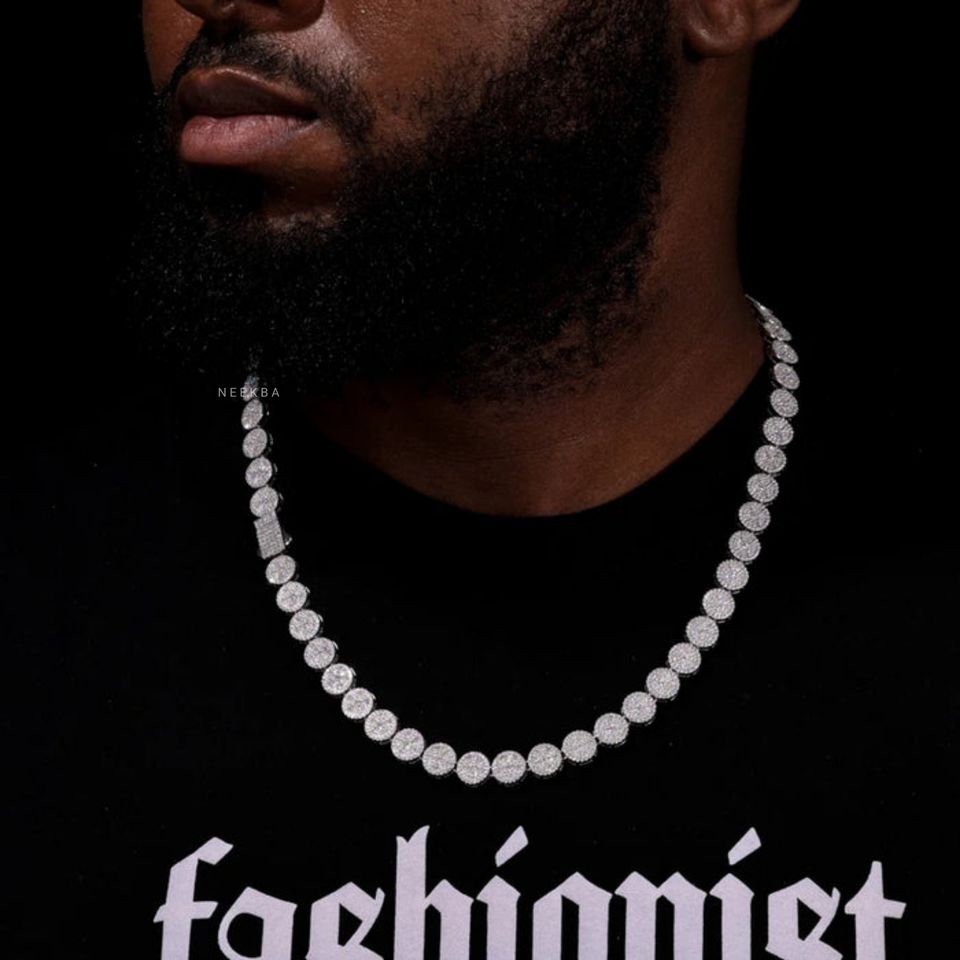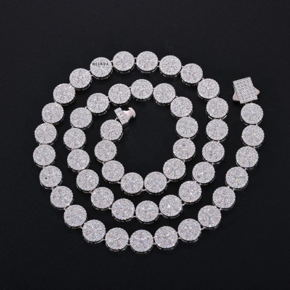 S925 Moissanite Round Link Pave Chain - Men's Iced Out Hip Hop Necklace, 100% Handmade & Hand-Set Necklace from Indian Supplier