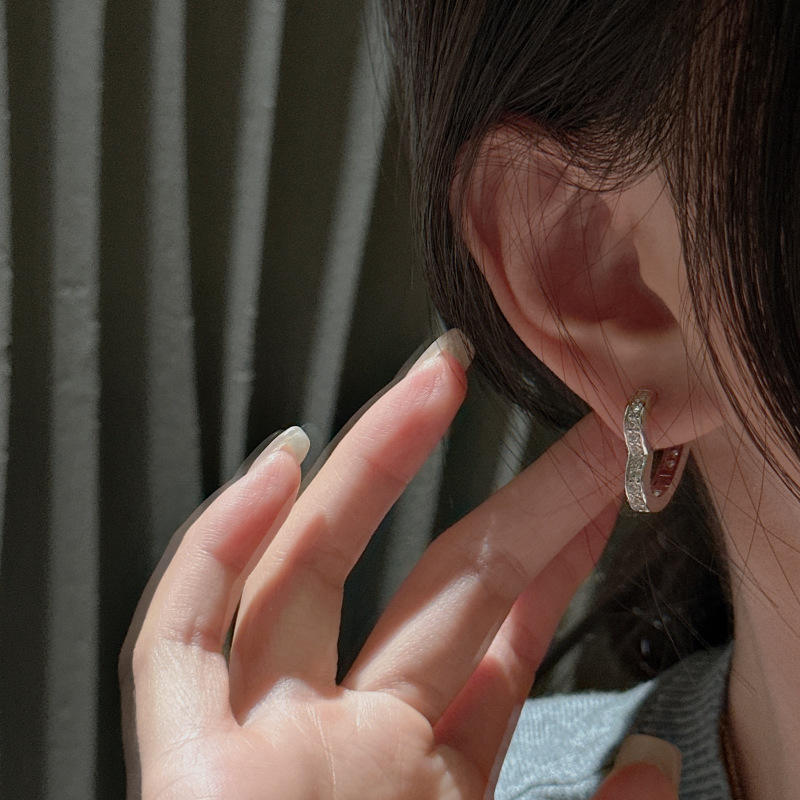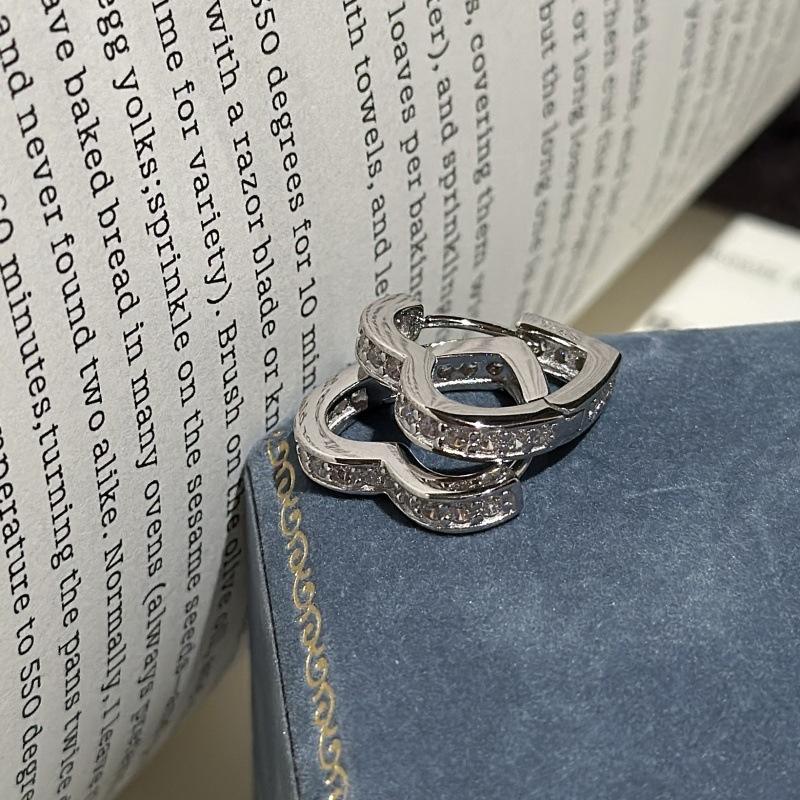 S925 Pure Silver Antique Heart Ear Buckle European American Fashionable French Minimalist Micro Inlaid Stud Earrings