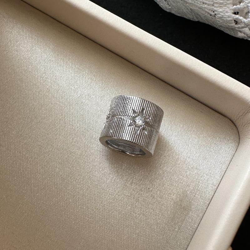 S925 Pure Silver Antique Style Six-Pointed Star Tube Bead Neutral Simple Autumn Winter Inlay 18K Single Item Niche Design