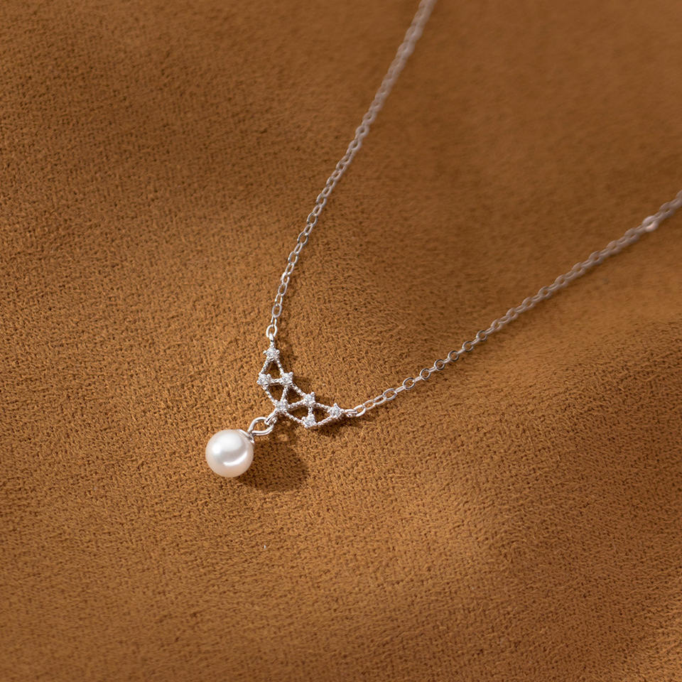 S925 Pure Silver Baroque Pearl Black Pointed Crystal Necklace Retro Style Design Fashion Pendant Accessory for Women Model