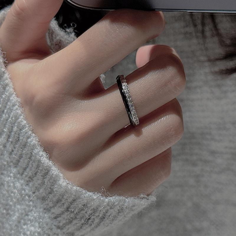 S925 Pure Silver Black Drop Glazed Ring Niche Design Gold Plating Simple Fashionable Medieval Vintage Micro Inlaid Zircon Ring