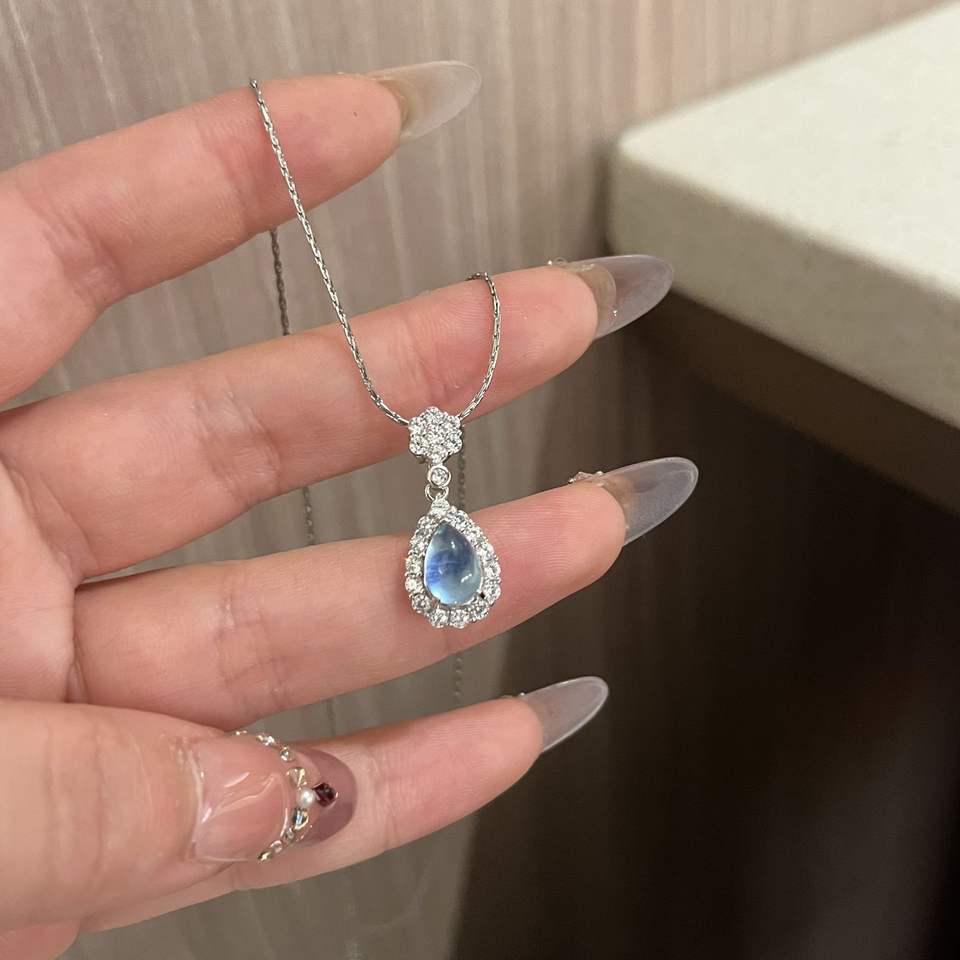 S925 Pure Silver Blue Jellyfish Necklace with Sapphire High-End Ocean Style Pendant Personalized Versatile Collarbone Design