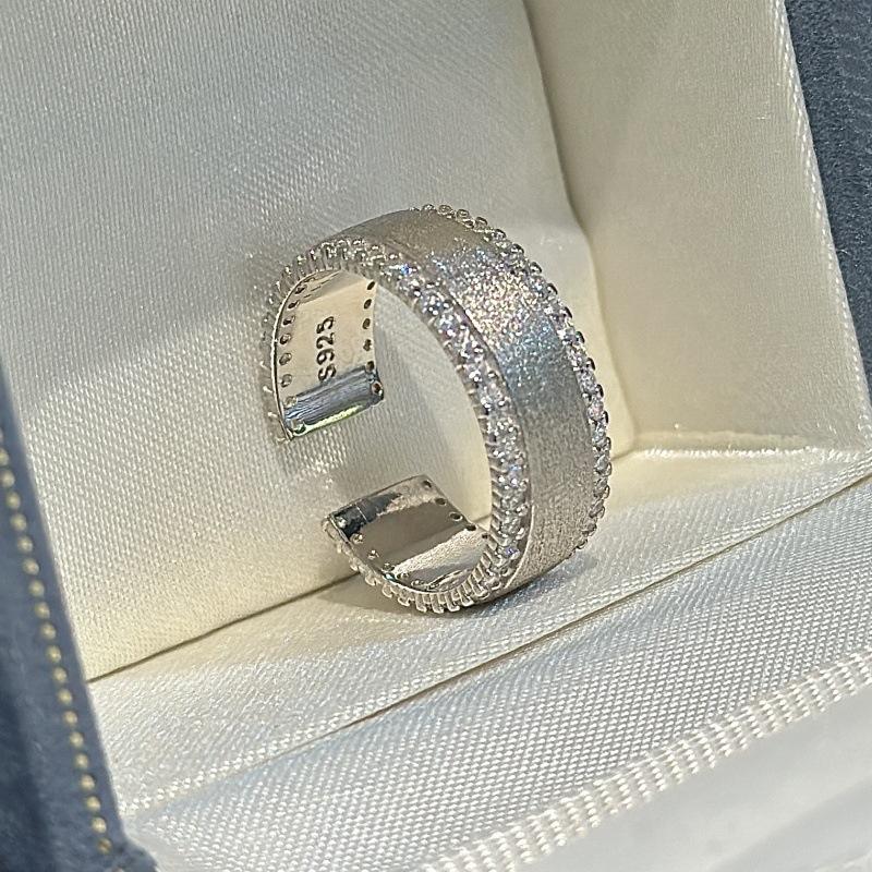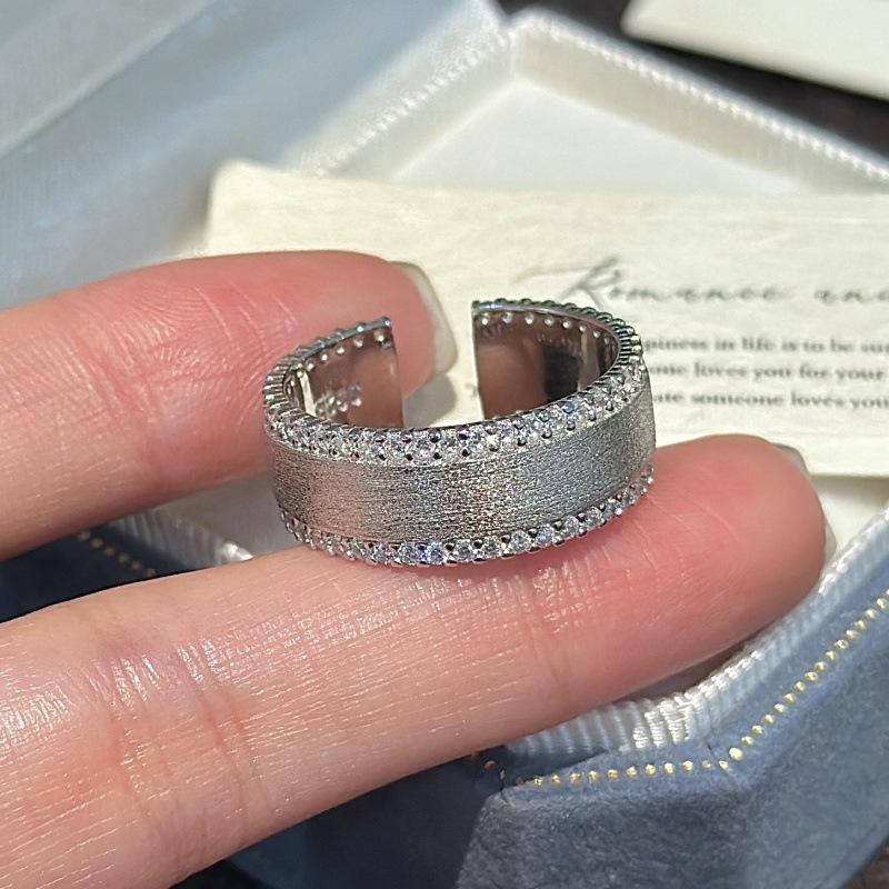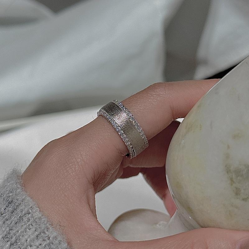 S925 Pure Silver Brushed Ring Niche Design Simple Fashionable Medieval Heavy Industry Vintage Open Ring with Inlay Shell Setting