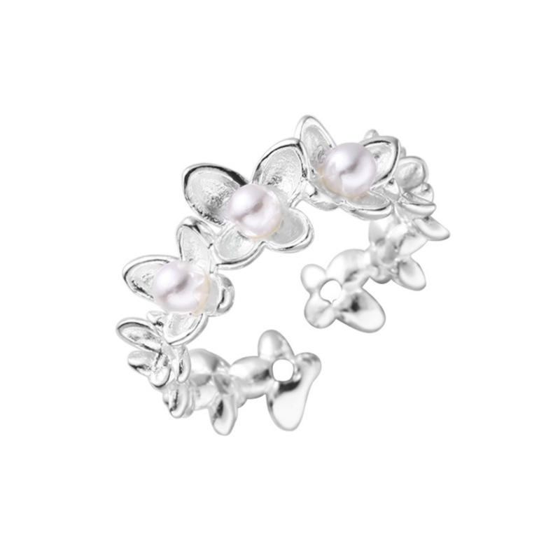 S925 Pure Silver Camellia Ring with Flower Butterfly and Pearl Niche Design Best Friend Gift Luxury Temperament