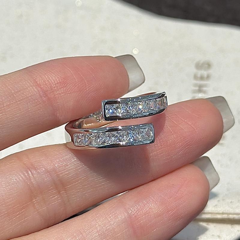S925 Pure Silver Cross Zircon Ring with Niche Design Simple Fashionable Vintage Geometric Opening Ring 18K Rose Gold Plated