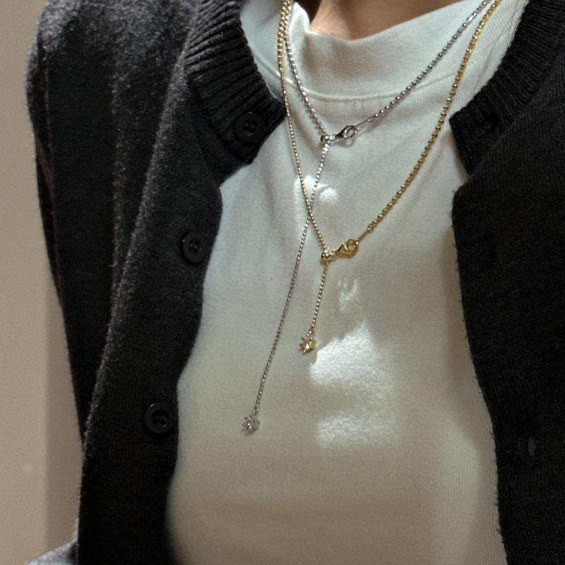 S925 Pure Silver Cut Bead Necklace with Niche Design Simple Vintage Style Peacock Stone Collarbone Chain Fashion Sweater Chain