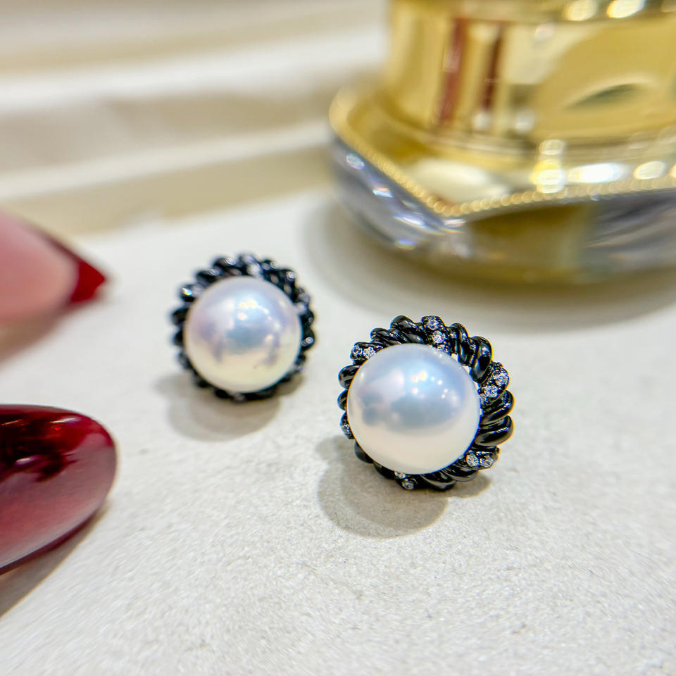 S925 Pure Silver DIY Pearl Accessories 11-12mm Round Beads & Fine Stud Earrings with Empty Tray 22269
