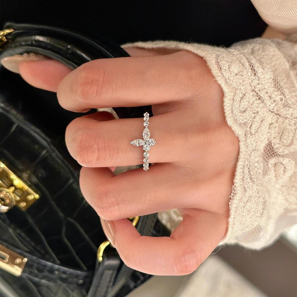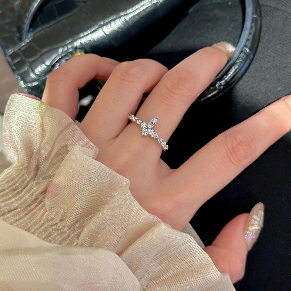 S925 Pure Silver Diamond Ring Fairy Style Floating Classic Butterfly Light Luxury Fresh Sweet Slender Versatile for Women