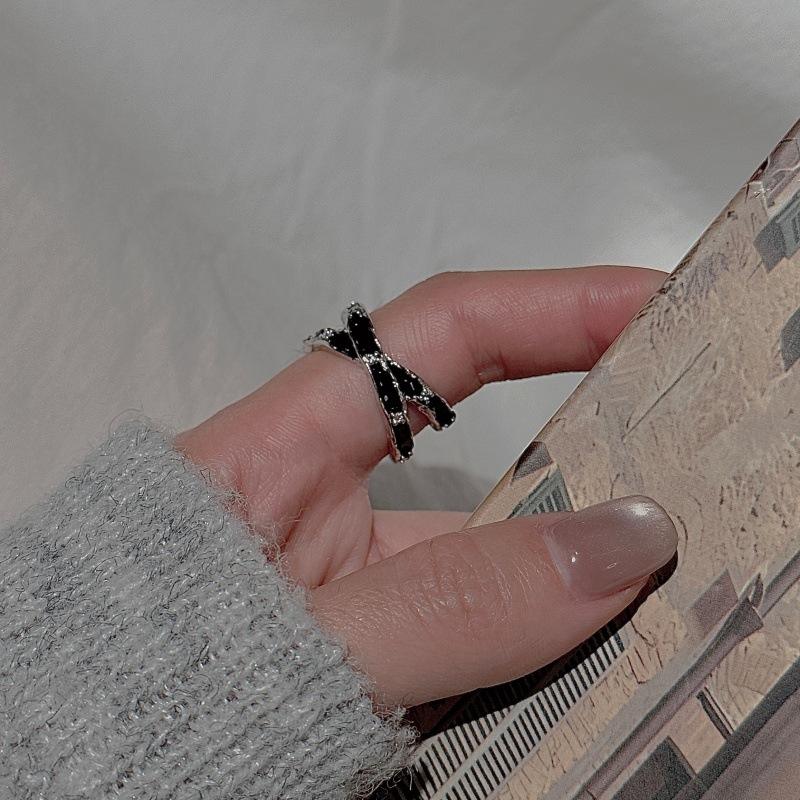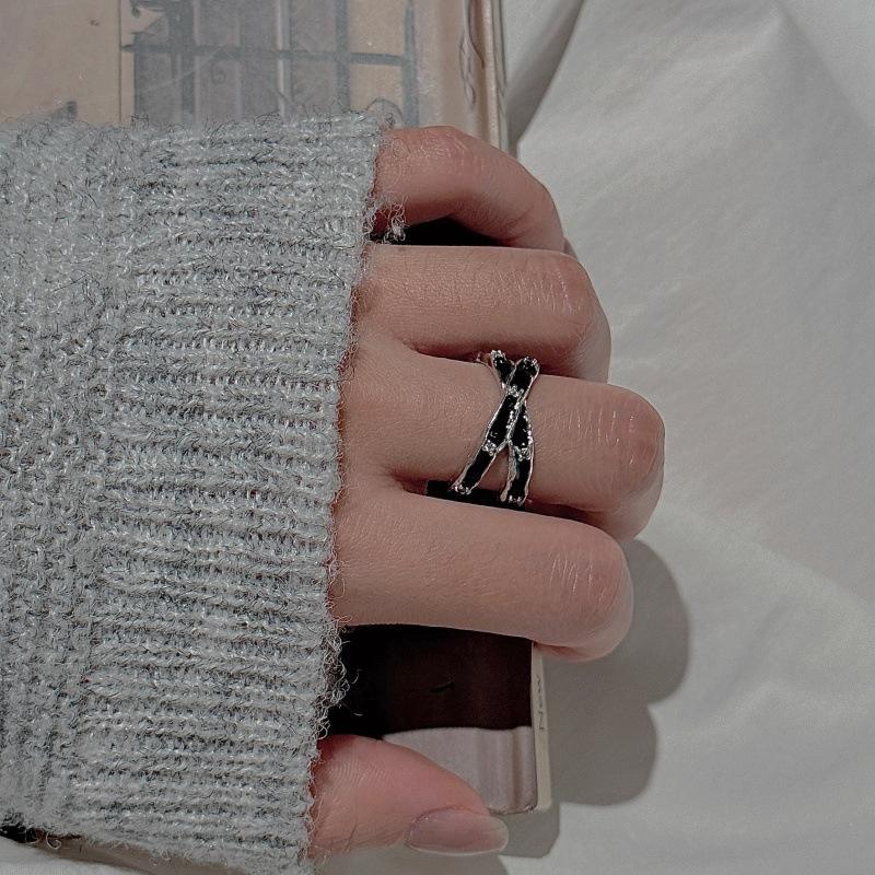 S925 Pure Silver Drop Glazed Cross Ring Simple and Fashionable Niche Design Medieval Vintage Zircon Open Adjustable Ring