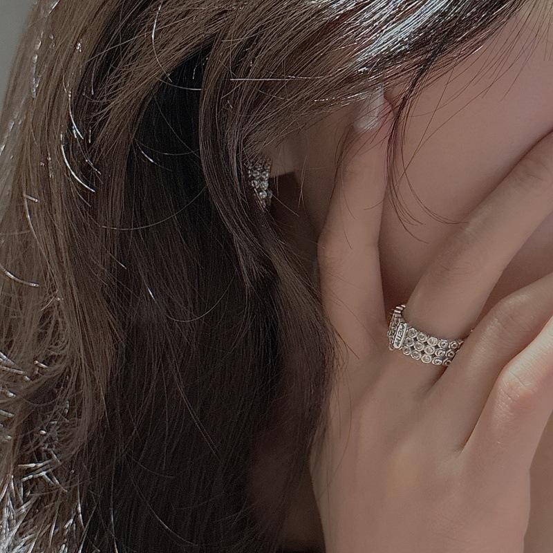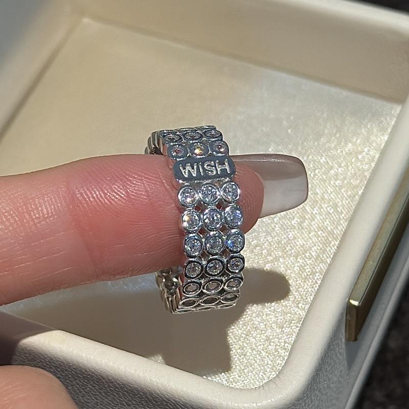 S925 Pure Silver Full Set Round Zirconia Ring Niche Design Simple Medieval Vintage English Letter Opening Claw Inlay Technology