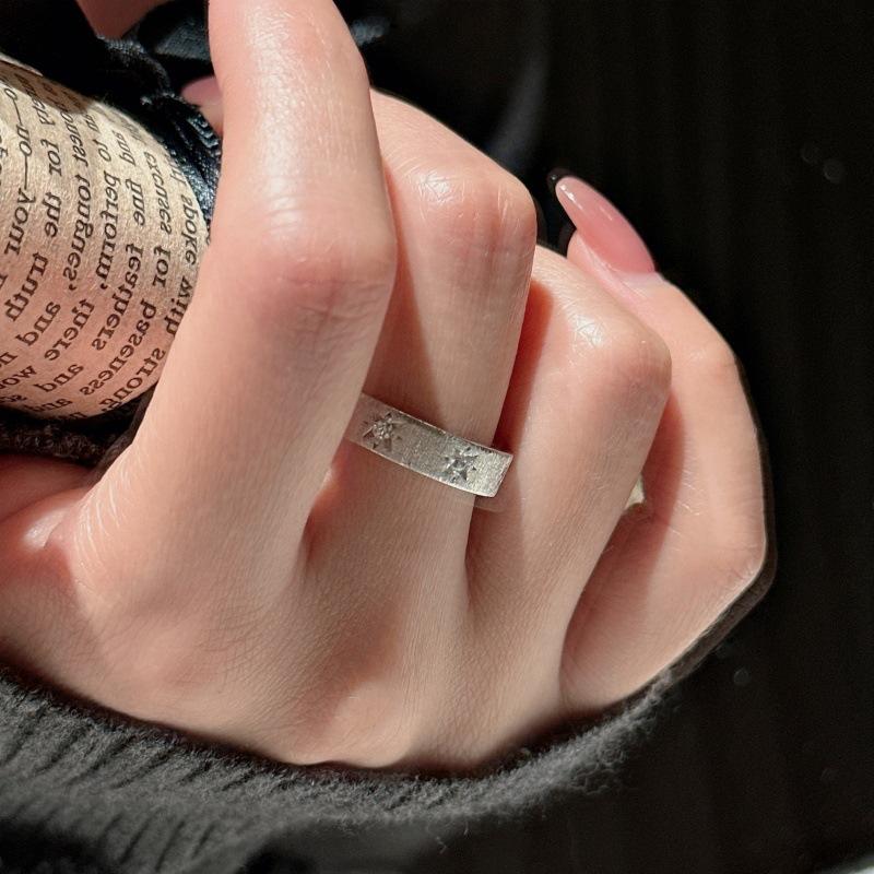 S925 Pure Silver Hexagonal Star Ring Elegant French Style with 18K Gold Plating Antique Inlay Design Light Luxury Simplicity