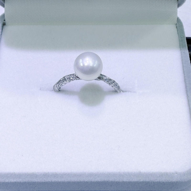 S925 Pure Silver High-End 7-8mm Flawless Aurora Pearl Ring for Women Luxury Light Jewelry-Wholesale
