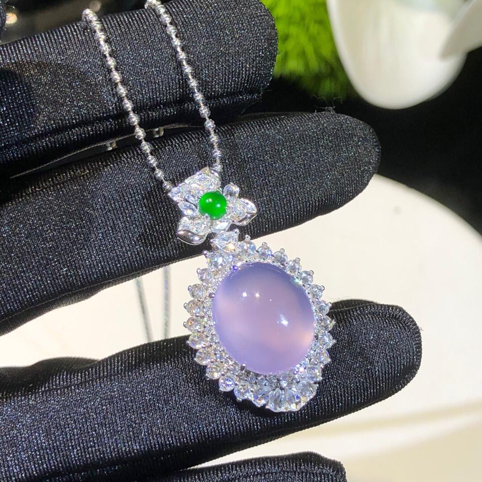 S925 Pure Silver Inlaid Natural Water Foam Jade Small Green Chalcedony Gourd Necklace Lucky Pendant New Fine Stud Earrings