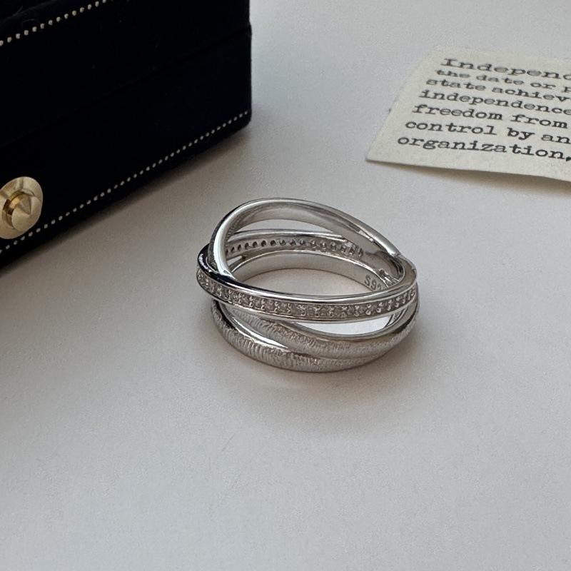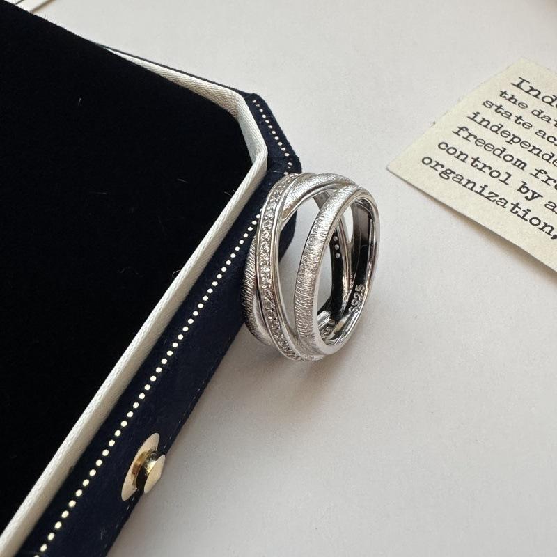 S925 Pure Silver Medieval Light Luxury Ring with Zircon Simple Elegant Temperament Multi-Layer Cross Design Cut Stone