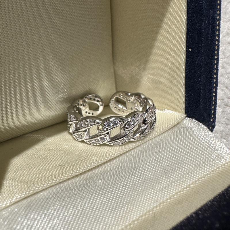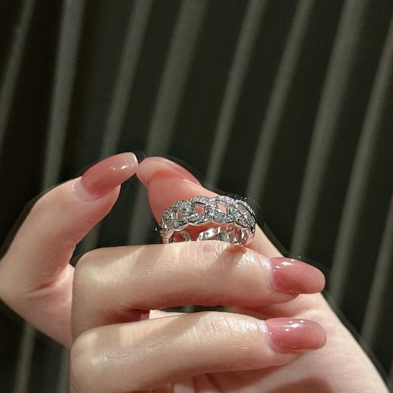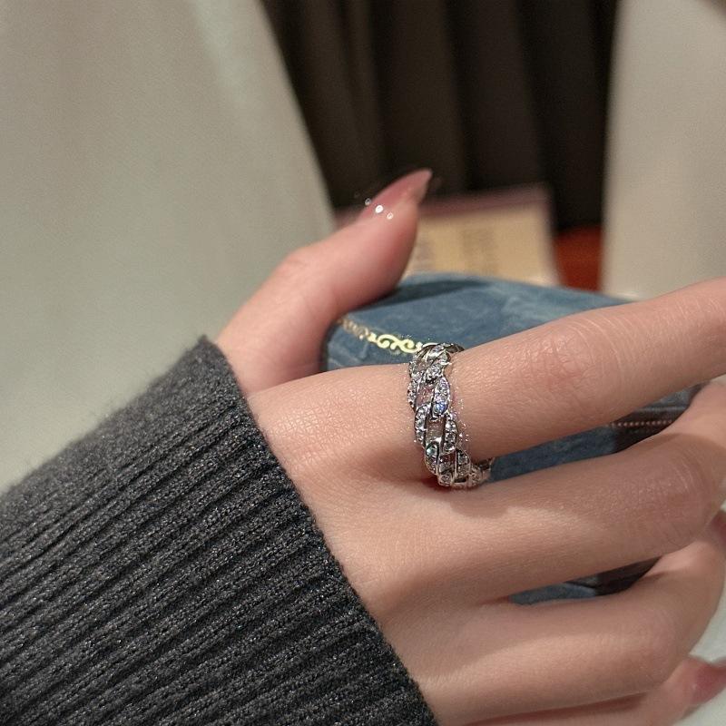 S925 Pure Silver Micro-Inlaid Zircon Ring Light Simple Personalized Super Sparkling Full Diamond Antique Style Free Size Jewelry