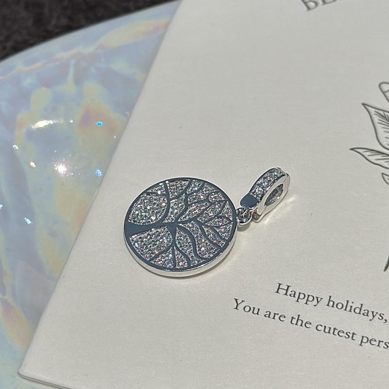 S925 Pure Silver Niche Design Life Tree Pendant Simple Fashionable Vintage Light Jewelry with Micro Inlaid Round Pendant