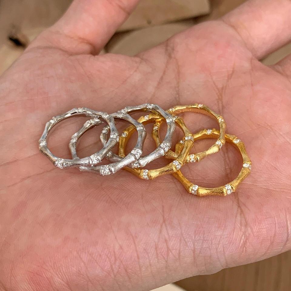 S925 Pure Silver Plated with 18K Gold Vintage Style Bamboo Ring Featuring Vintage Brushed Craftsmanship Free Size Inlay