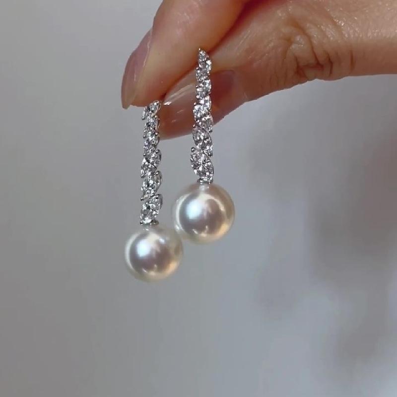 S925 Pure Silver Retro Japanese Style Diamond Studded Pearl Tassel Dangle Earrings Exquisite Luxurious Niche Design