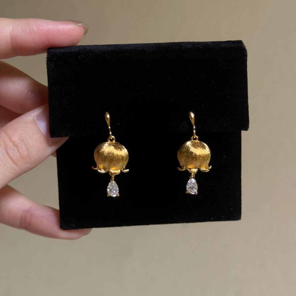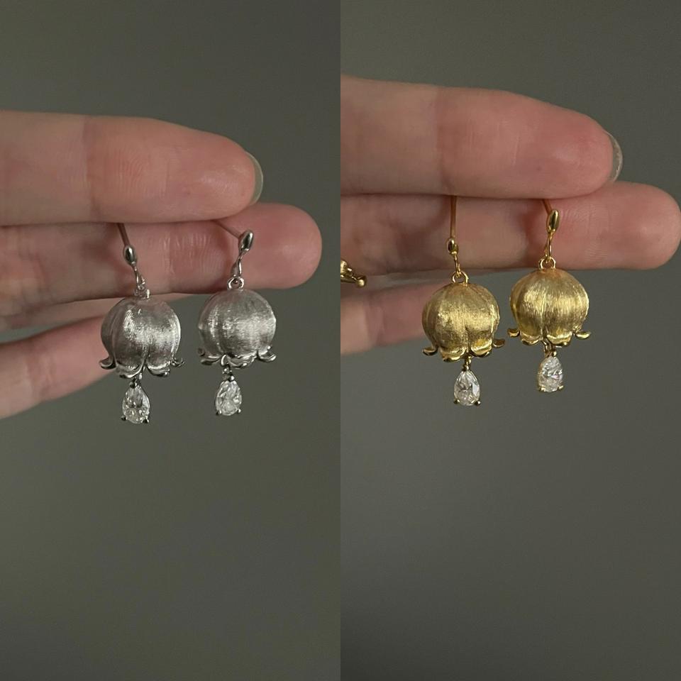 S925 Pure Silver Retro Luxury High-End Bell Orchid Water Drop Earrings Niche Retro Light Fine Dangle Raindrop Design