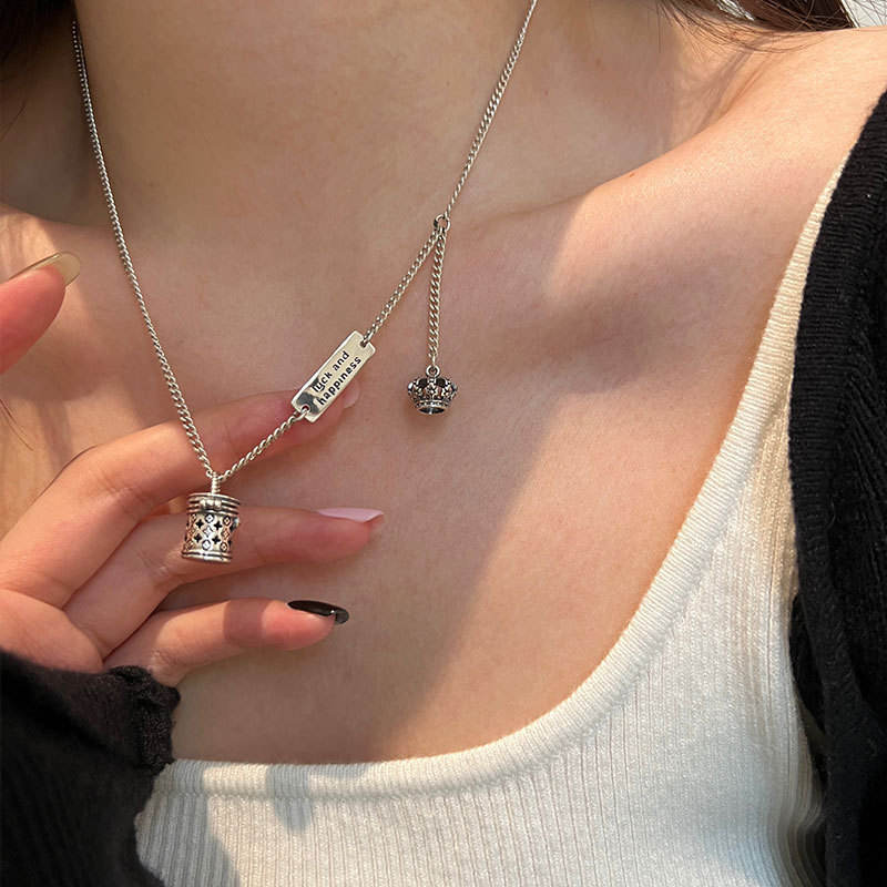 S925 Pure Silver Retro Small Light Bulb Pendant High-End Sparkling Pearl Chain for Sweater Strong Light Necklace Niche Design