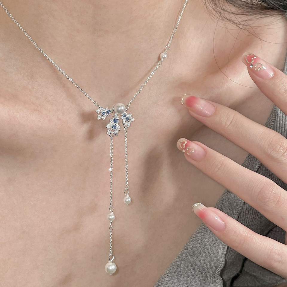 S925 Pure Silver Sparkling Star Diamond Four-Star Round Bead Chain Necklace Luxury Refreshing Women's Fashion Pendant