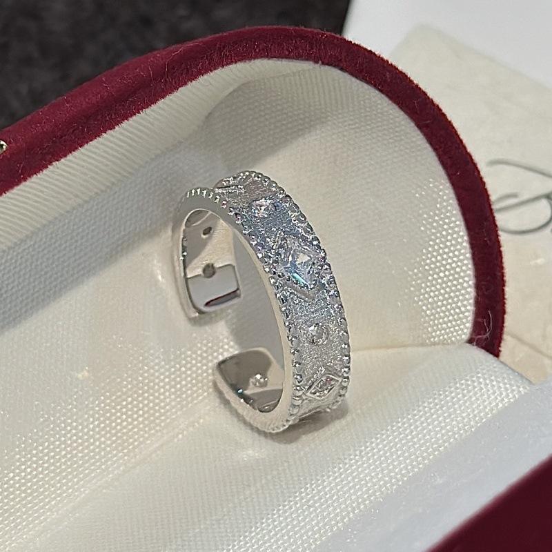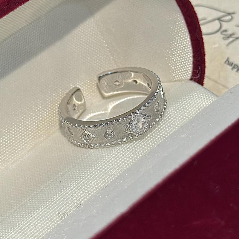S925 Pure Silver Square Ring Oval Cut Micro Inlaid Zirconia Niche Design Simple Fashionable Medieval Vintage Style Open Ring