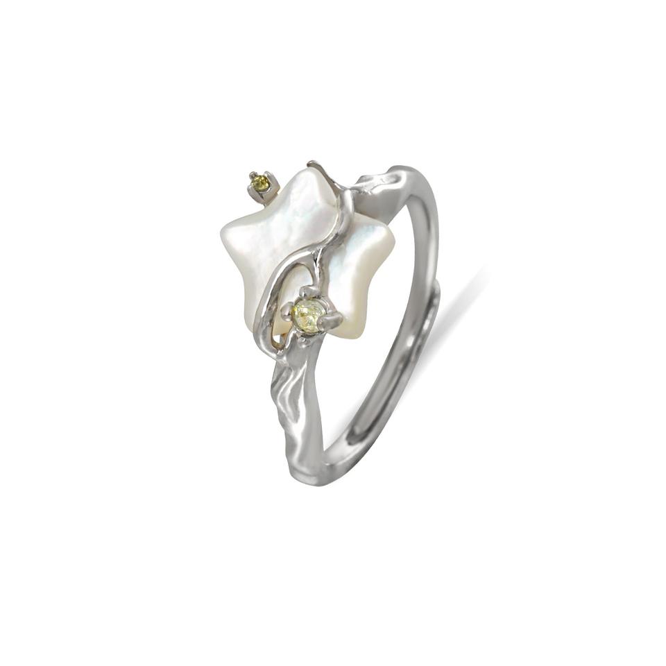 S925 Pure Silver Star White Butterfly Shell Zircon Ring for Women High-End Irregular Niche Cold Cool Style with Cross Shape