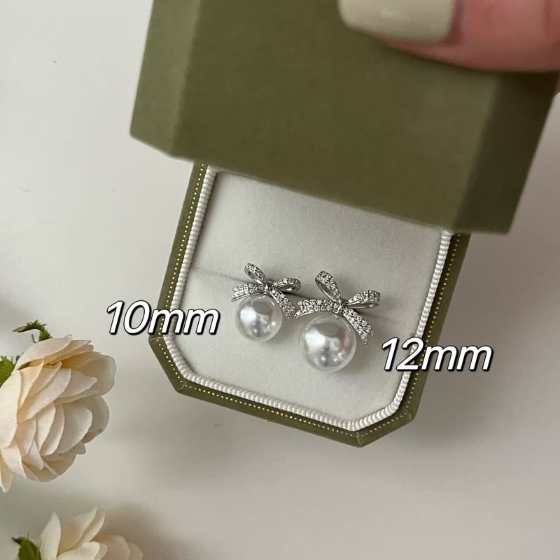 S925 Pure Silver Wealthy Heiress Cute Noble Pure Desire Girlish Feeling Bow Australian White Pearl Earrings