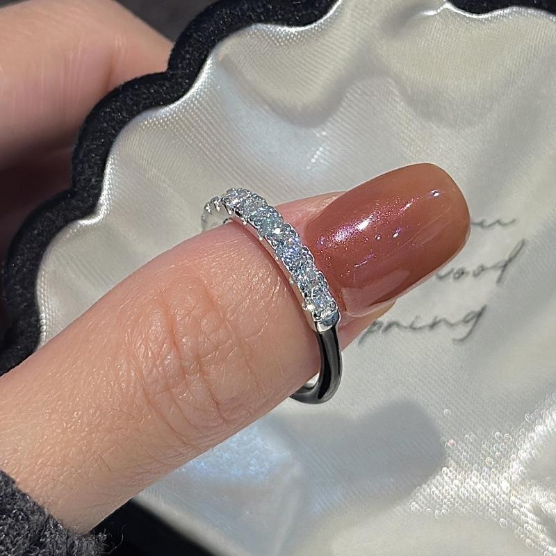 S925 Pure Silver Zircon Ring with Niche Design Simple and Fashionable Vintage Black Drop Glazed Open Ring Rose Gold Plated