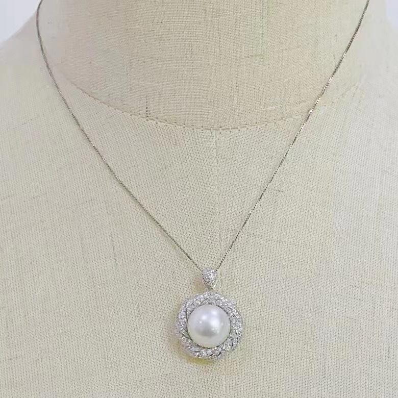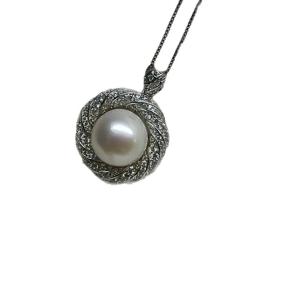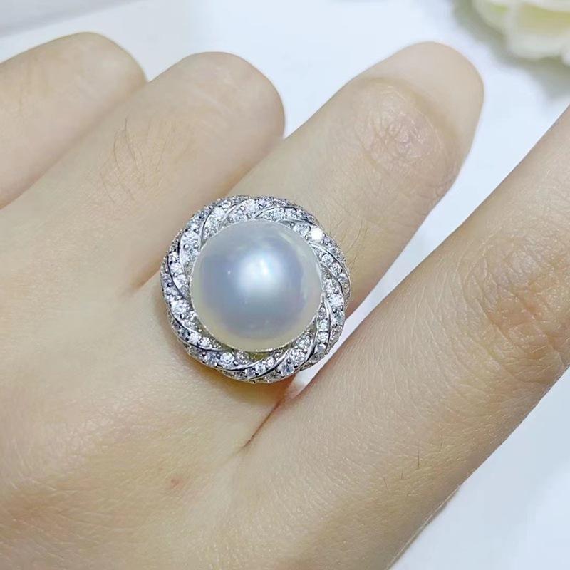 S925 Silver 11-12mm Large Round Pearl Pendant Ring Set Atmospheric Thick Silver Jewelry Two Piece Jewelry
