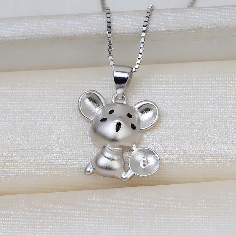 S925 Silver 12 Zodiac Pendants 7-8 Rat Pearl DIY Accessories for Jewelry Making Empty Baby Hair Necklace Half-Finished Product