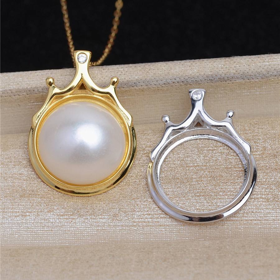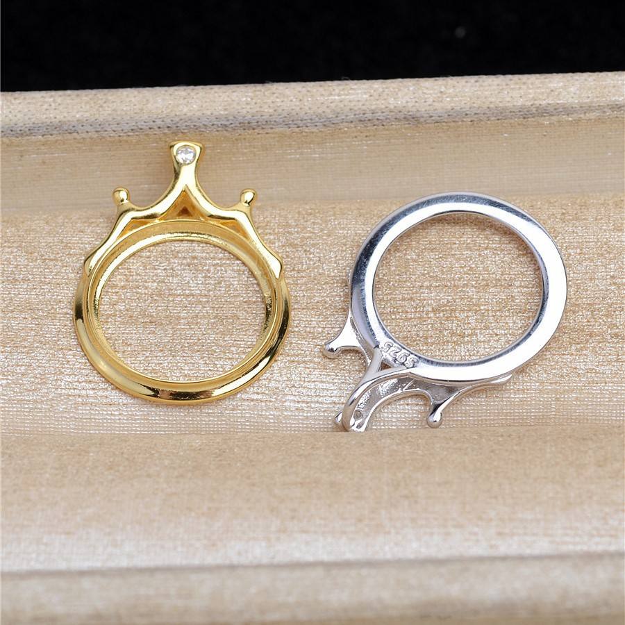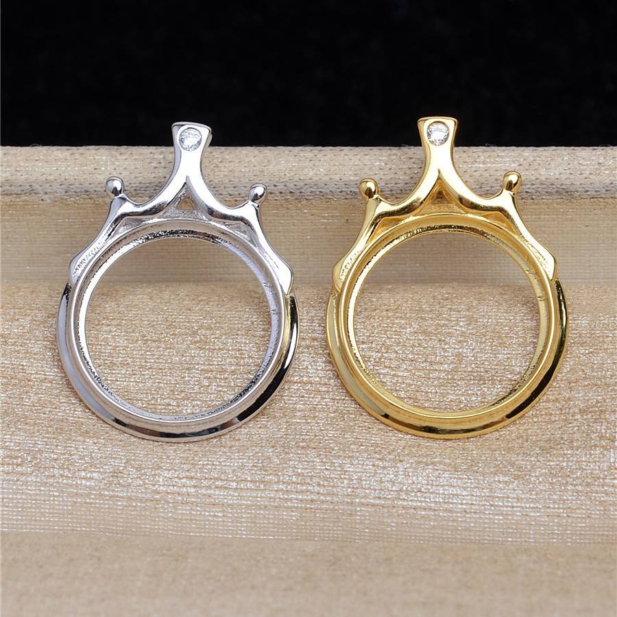 S925 Silver 15.3mm Marble Pearl Hollow Crown Semi Finished DIY Tray 5492 for Jewelry Findings & Components