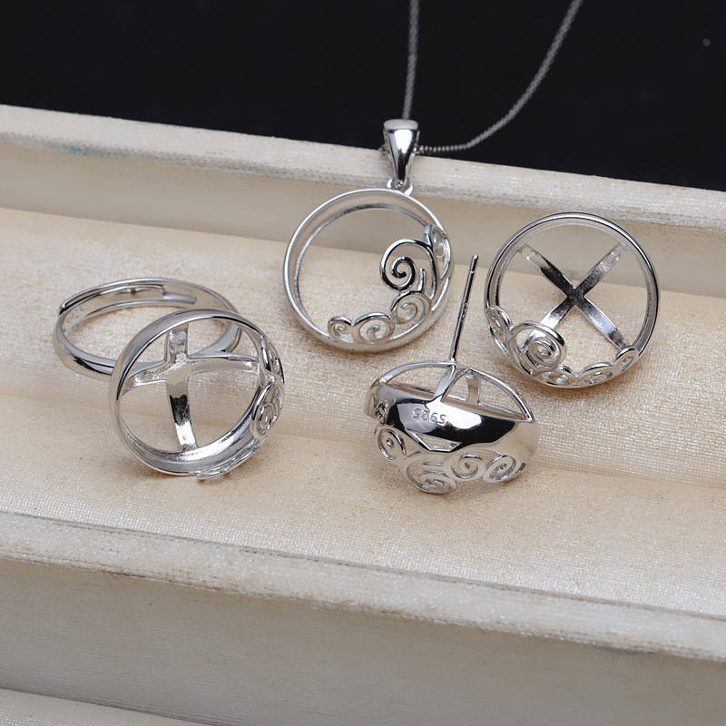 S925 Silver 4881 DIY Accessory Set 16.5mm Pearl Horse Shell Flat Bottom Empty Earring Pendant & Earring Holder